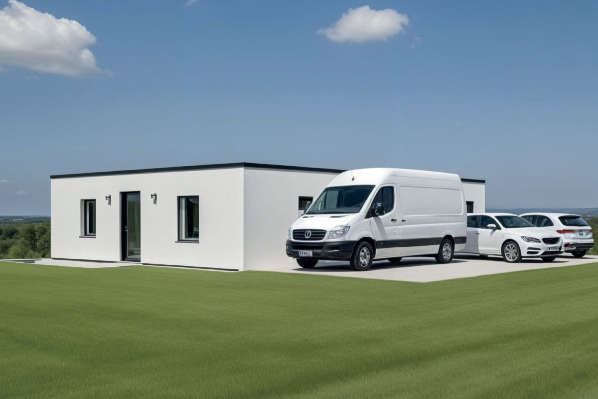 PVC roof, plastic window and door infills, vinyl flooring, plasterboard walls and ceiling, framed interior doors, ceramic floor and wall tiles in the bathroom, Geberit toilet, ceramic washbasin, shower enclosure, wood/render façade, interior and exterior painting, interior and exterior lighting, electrical sockets, electrical distribution board
