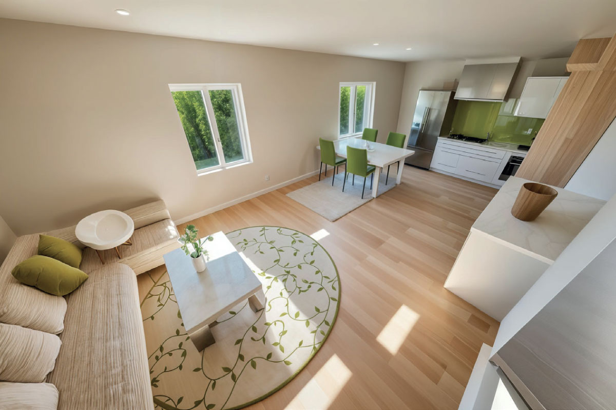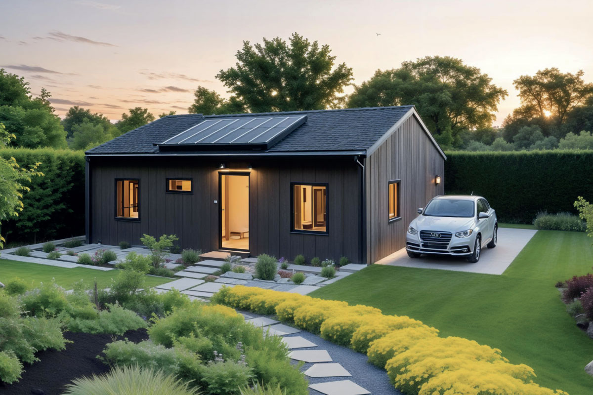 PVC roof, plastic window and door infills, vinyl flooring, plasterboard walls and ceiling, framed interior doors, ceramic floor and wall tiles in the bathroom, Geberit toilet, ceramic washbasin, shower enclosure, wood/render façade, interior and exterior painting, interior and exterior lighting, electrical sockets, electrical distribution board